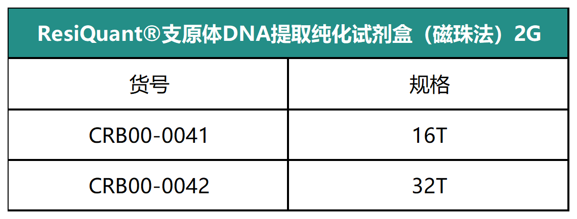 ResiQuant®支原體DNA提取純化試劑盒(磁珠法)2G通過樣本預(yù)處理操作和磁珠特異性結(jié)合,有效降低細(xì)胞及樣本基質(zhì)的干擾,可提取純化生物樣品中的微量支原體DNA。提取步驟簡單,僅需30~45分鐘,與ResiQuant®支原體檢測試劑盒(熒光探針qPCR法)(CAT. CRB00-1011/CRB00-1012)配套使用,可達(dá)到快速檢測支原體的目的。